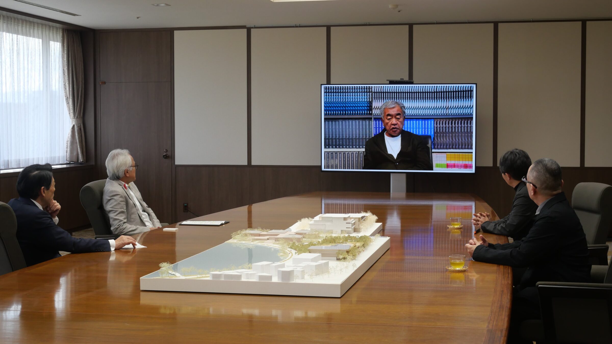 名城俊樹さんには、新しい美術館の模型を使って建物の特徴を解説していただき、建築家 隈研吾さんからは「ワンヘルスの『人にも地球にも優しい』という考え方と、佐藤さんのグラフィックデザインが共鳴して今回の美術館に最もふさわしいものができたら」とビデオメッセージをいただきました。