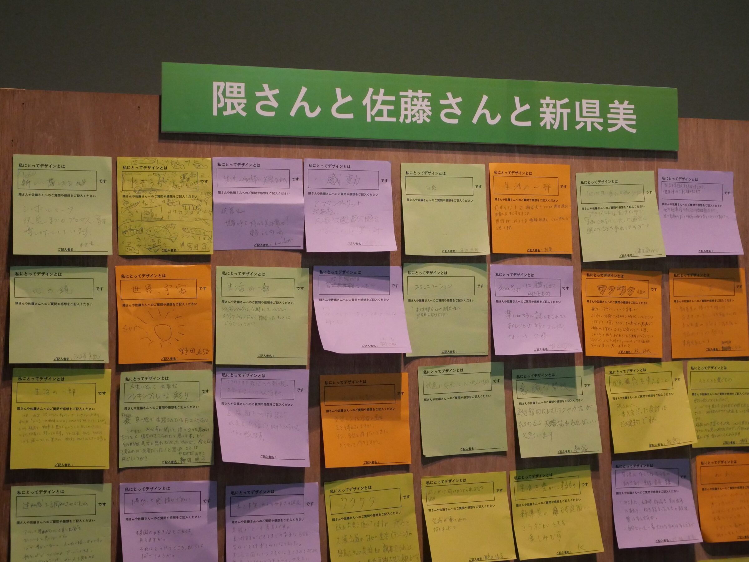 ワークショップ後半は、「私にとってデザインとは〇〇です」と書かれたカードに参加者がメッセージを記入するスタイルで展開し、様々な意見や質問が飛び出しました。